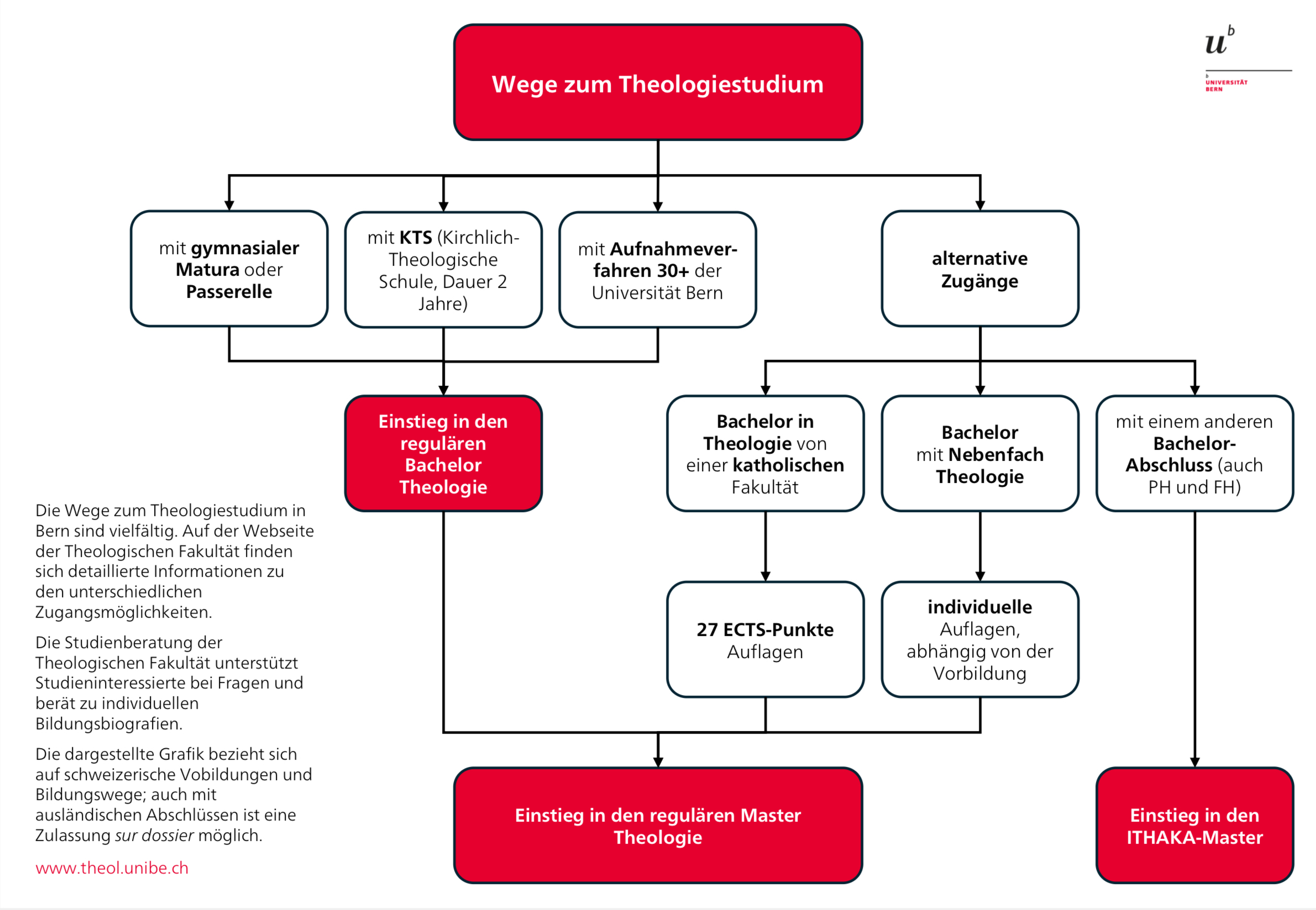 An der Theologischen Fakultät der Universität Bern haben Studierende mit unterschiedlichen religiösen und weltanschaulichen Hintergründen die Möglichkeit, sich im Dialog der Konfessionen und Religionen ein wissenschaftlich fundiertes Urteil zu den vielfältigen Aspekten des Judentums, des Christentums und anderer Religionen zu bilden. Lehre und Forschung der Fakultät zeichnen sich durch Schwerpunkte in christkatholischer und evangelischer Theologie, Judaistik und Interreligiösen Studien aus. Zum zeitgemässen und kritischen Profil der Berner Fakultät gehört ein starker Praxisbezug.
